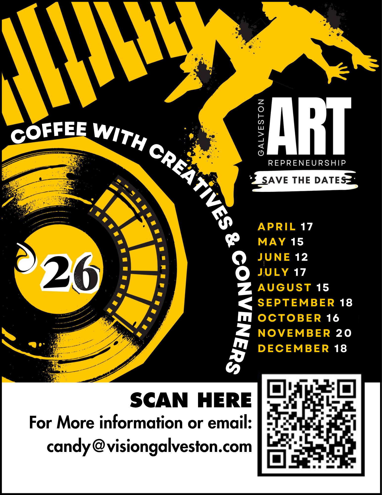 Artists of every medium gather monthly on a Friday to connect over coffee, share ideas, talk needs and deeds, and help fuel one another’s creative momentum. If you’re building, dreaming, creating, support the arts with your time talent or treasure- this is your sign. We’re excited to keep these monthly gatherings going and can’t wait to see where this creative community takes us next. Meeting every month, locations vary in Galveston! Follow us on social media or EMAIL